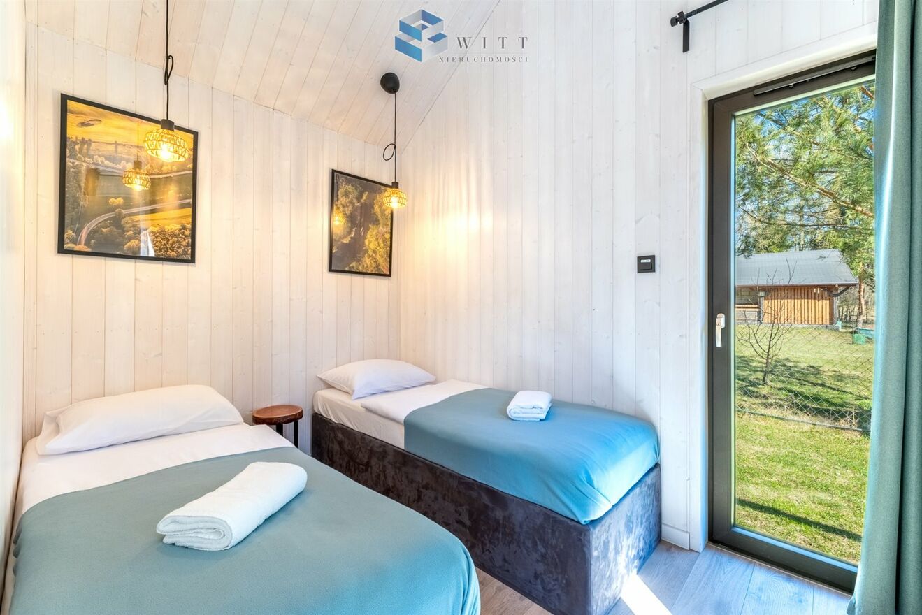 W miejscowości Wynki , zaledwie 150 metrów od plaży gminnej , czeka na sprzedaż wyjątkowa działka o powierzchni 1503 m² , zabudowana trzema nowoczesnymi, w pełni wyposażonymi domkami rekreacyjnymi . To oferta dla kogoś, kto szuka nie tylko pięknego miejsca na Mazurach, ale też gotowego produktu inwestycyjnego z wyrobioną marką najmu i wysokim potencjałem zwrotu .